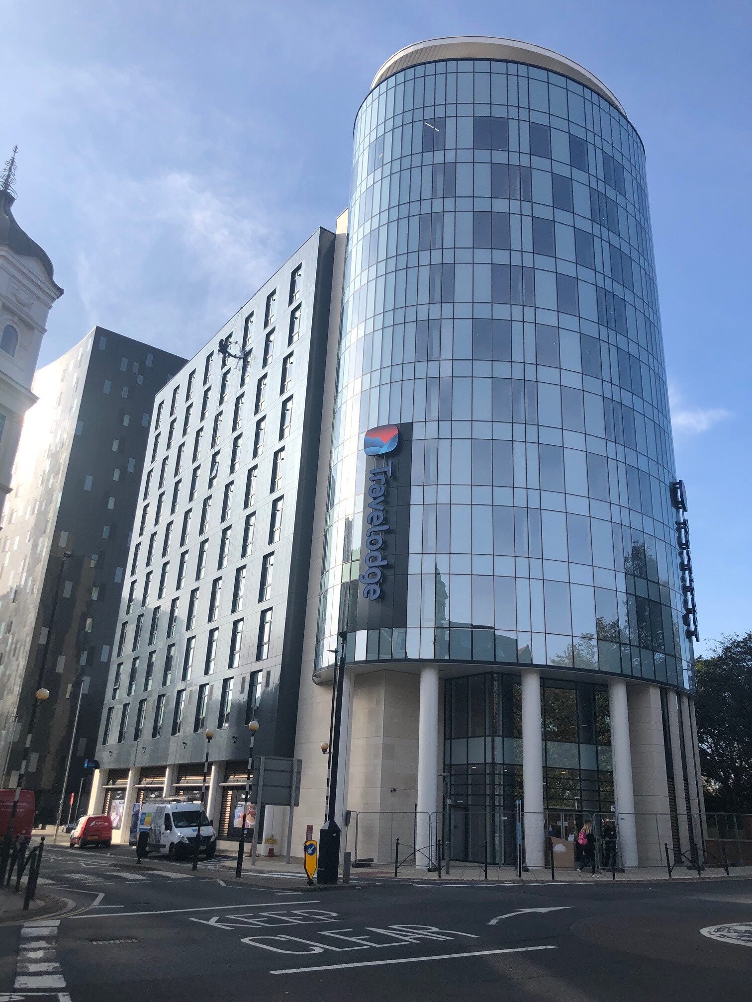 This project was for an 11 storey 152 bedroom Travelodge hotel which is now one of their flagship sites. The scheme consists of an elliptical shaped glazed tower located on the corner of Stanhope Road with the main bedroom block to the south of the tower being reduced in height by one storey
